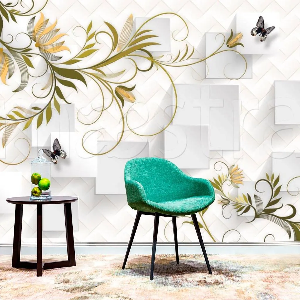 Бесшовные обои на стену: 3д цветы на кубах. Артикул: 10-543