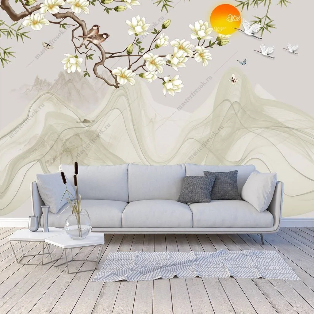 Бесшовные обои на стену: 3д Китайский пейзаж. Артикул: 10-629