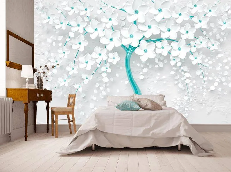 Бесшовные обои на стену: Дерево 3д с золотыми цветами. Артикул: 10-741