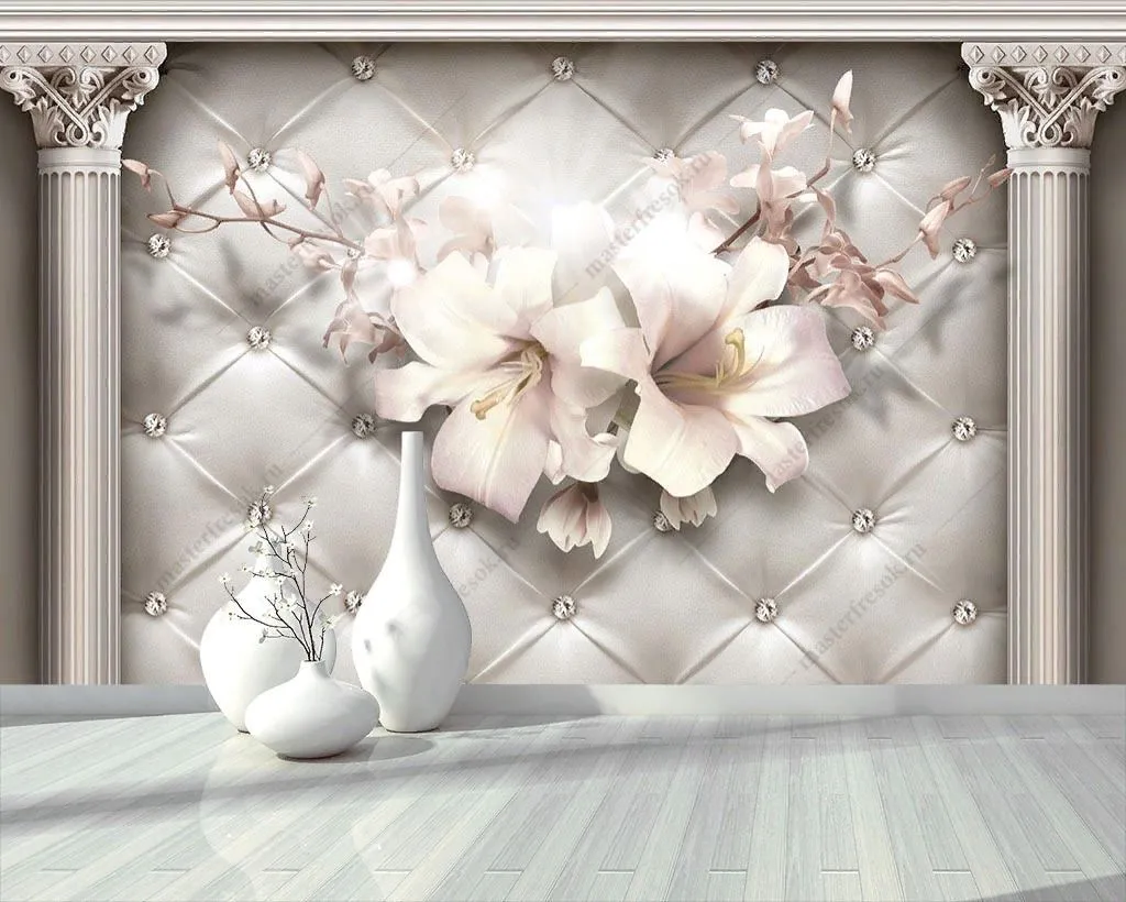 Бесшовные обои на стену: 3д Цветы и колонны. Артикул: 10-899