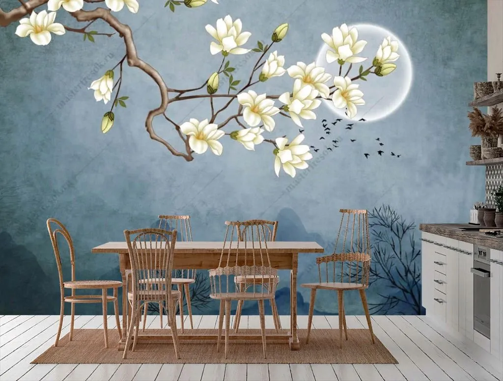 Бесшовные обои на стену: 3д Сакура. Артикул: 10-910