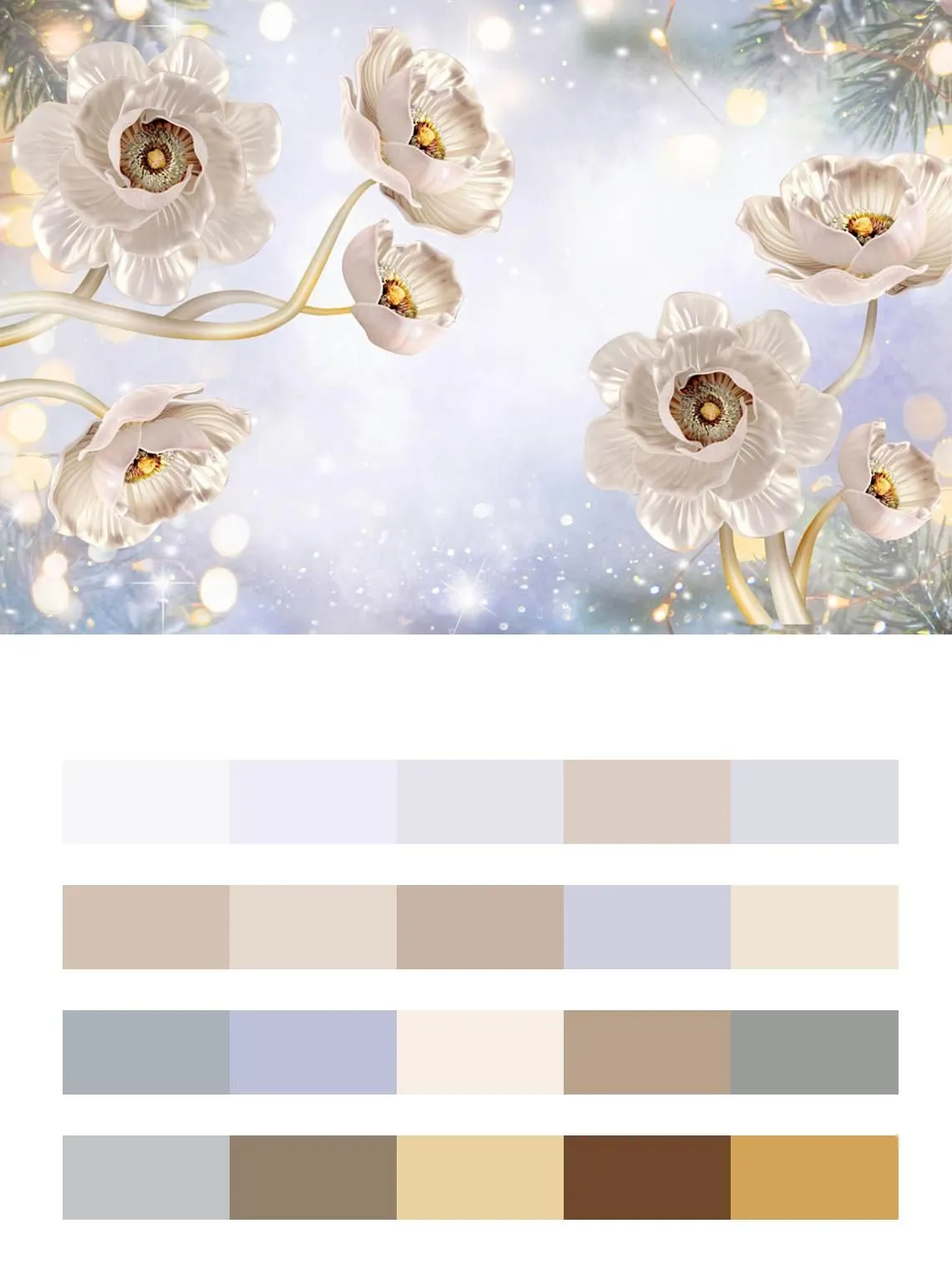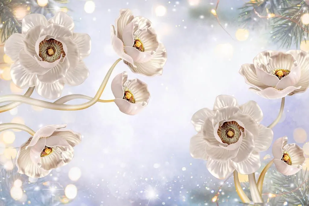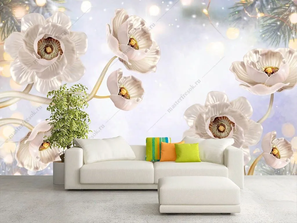 Бесшовные обои на стену: 3д Цветы на зимнем фоне. Артикул: 10-921
