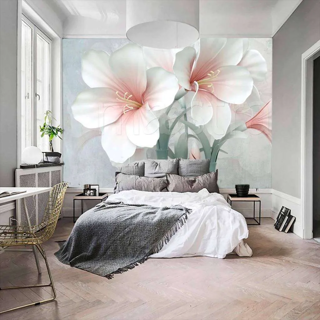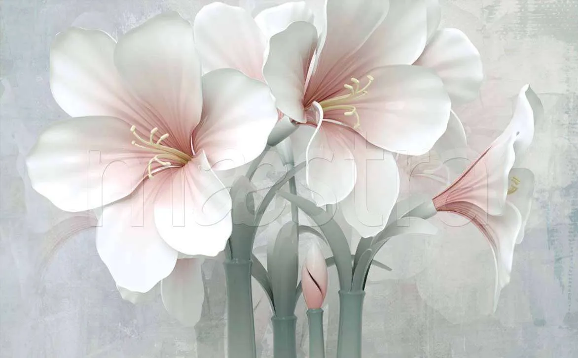 Бесшовные обои на стену: 3д цветок белый. Артикул: 15-037