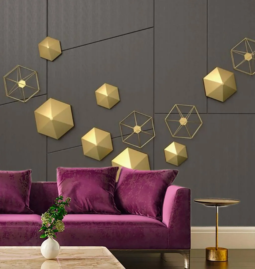 Бесшовные обои на стену: 3д золотые фигуры. Артикул: 15-391