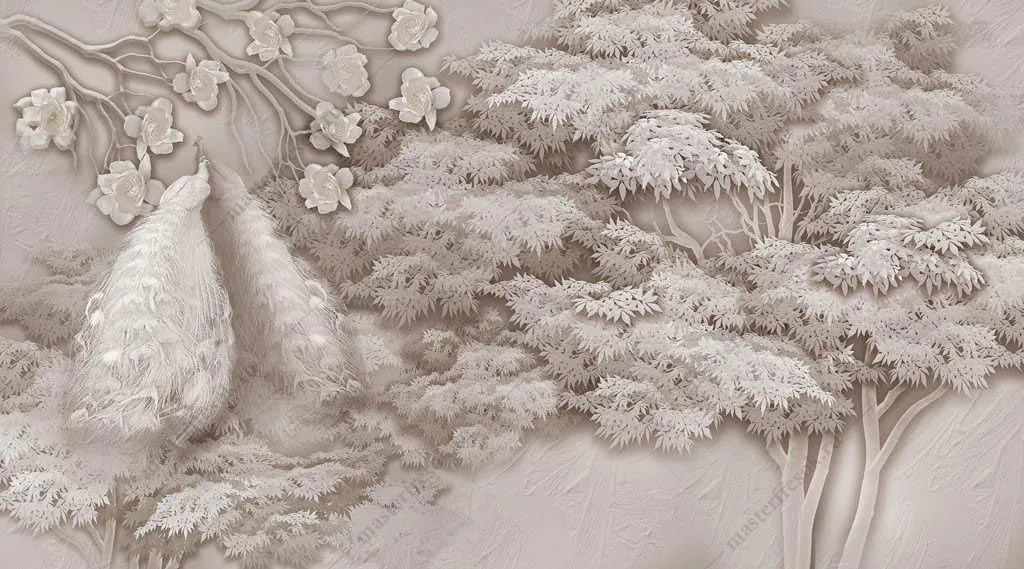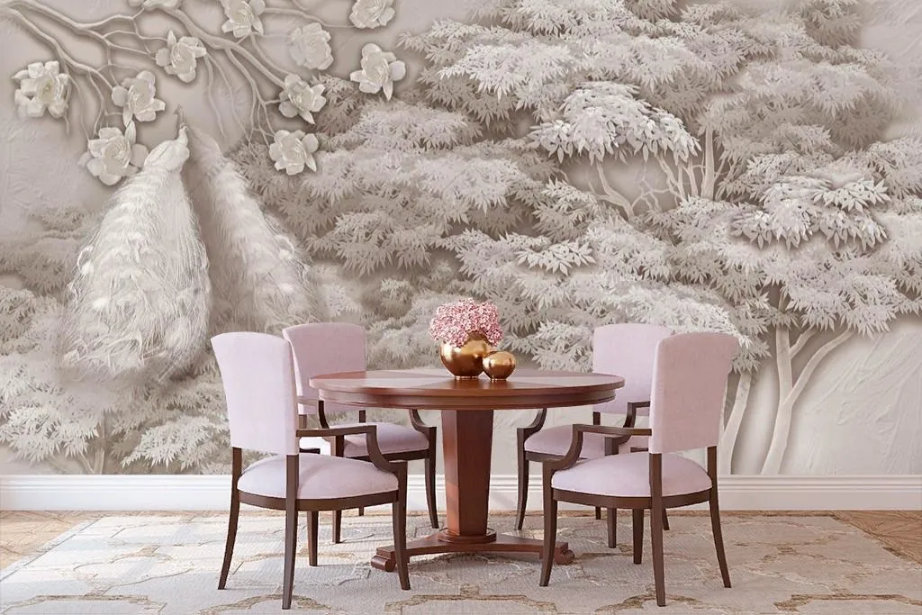Бесшовные обои на стену: Павлин у дерева. Артикул: 13-350