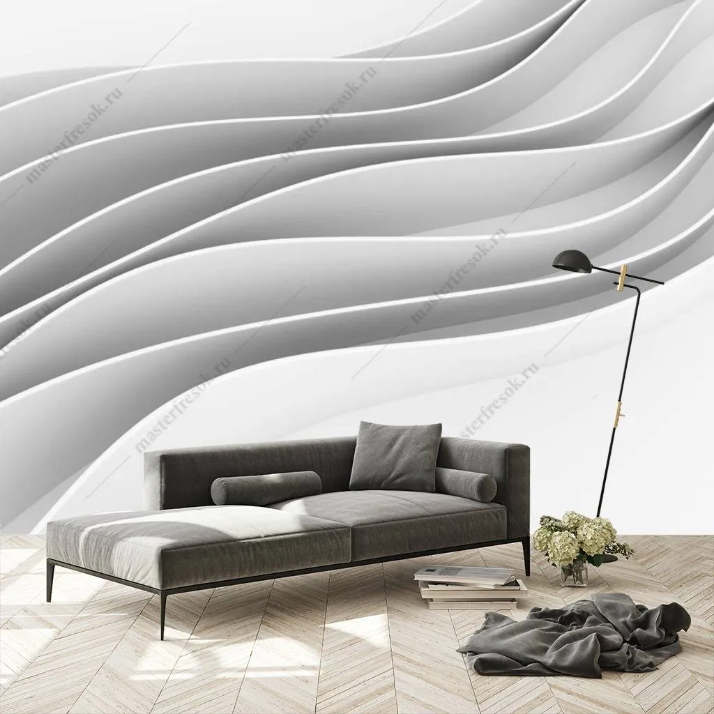 Бесшовные обои на стену: 3д белые плавные линии. Артикул: 10-788