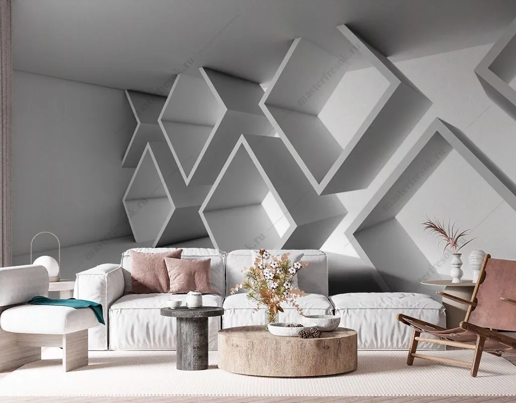 Бесшовные обои на стену: Трёхмерные ромбы. Артикул: 10-978