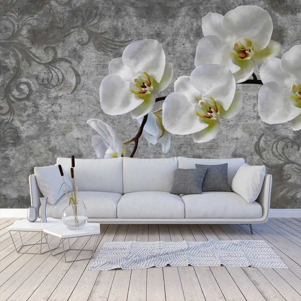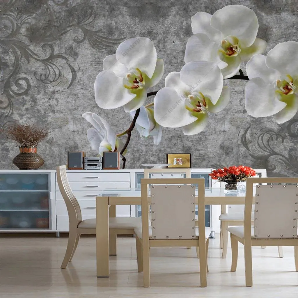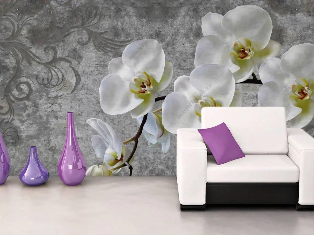 Бесшовные обои на стену: 3д Ветка белой орхидеи. Артикул: 10-833