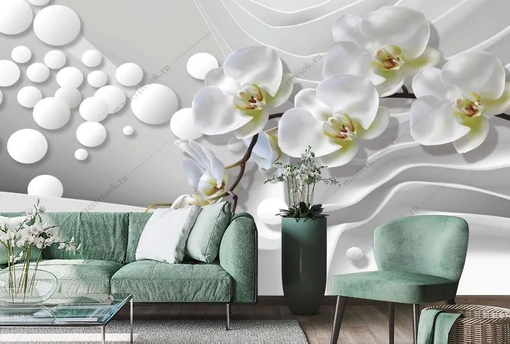 Бесшовные обои на стену: Орхидея 3д. Артикул: 10-892