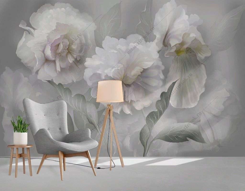 Бесшовные обои на стену: 3D пионы. Артикул: 13-487
