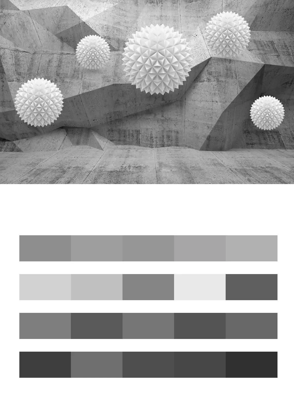Бесшовные обои на стену: 3д шары в серой сфере. Артикул: 10-793