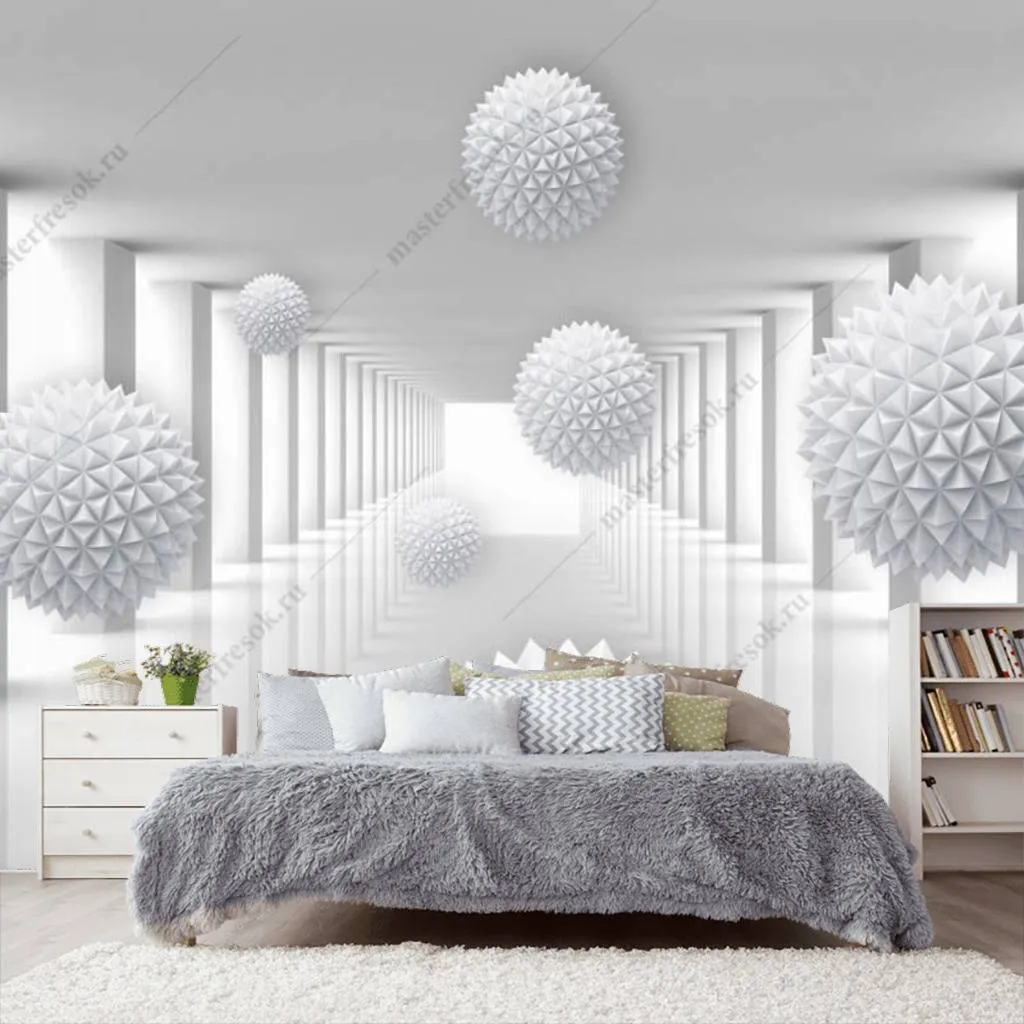 Бесшовные обои на стену: 3д объемные шары в тоннеле. Артикул: 10-787