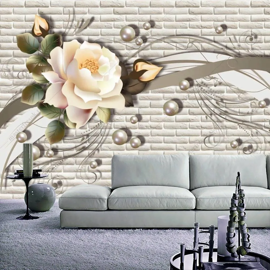 Бесшовные обои на стену: 3d бежевый цветок. Артикул: 10-832