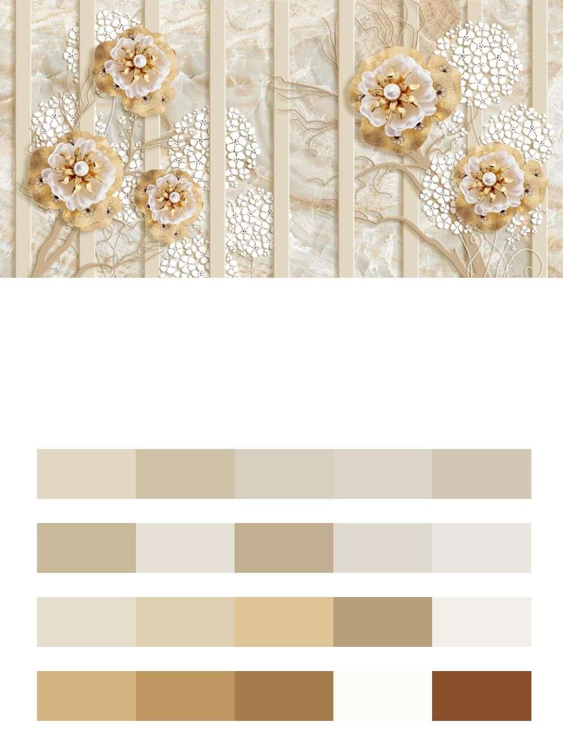 Бесшовные обои на стену: 3д Золотое дерево с цветами. Артикул: 10-842