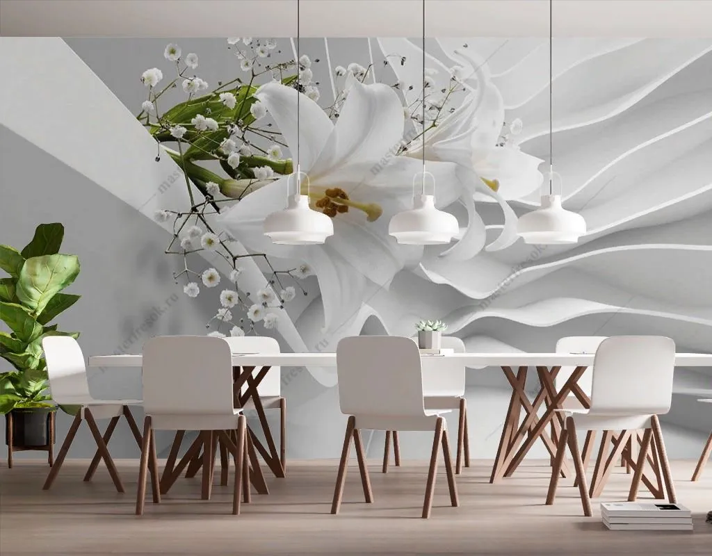 Бесшовные обои на стену: Белые лилии 3D. Артикул: 10-983