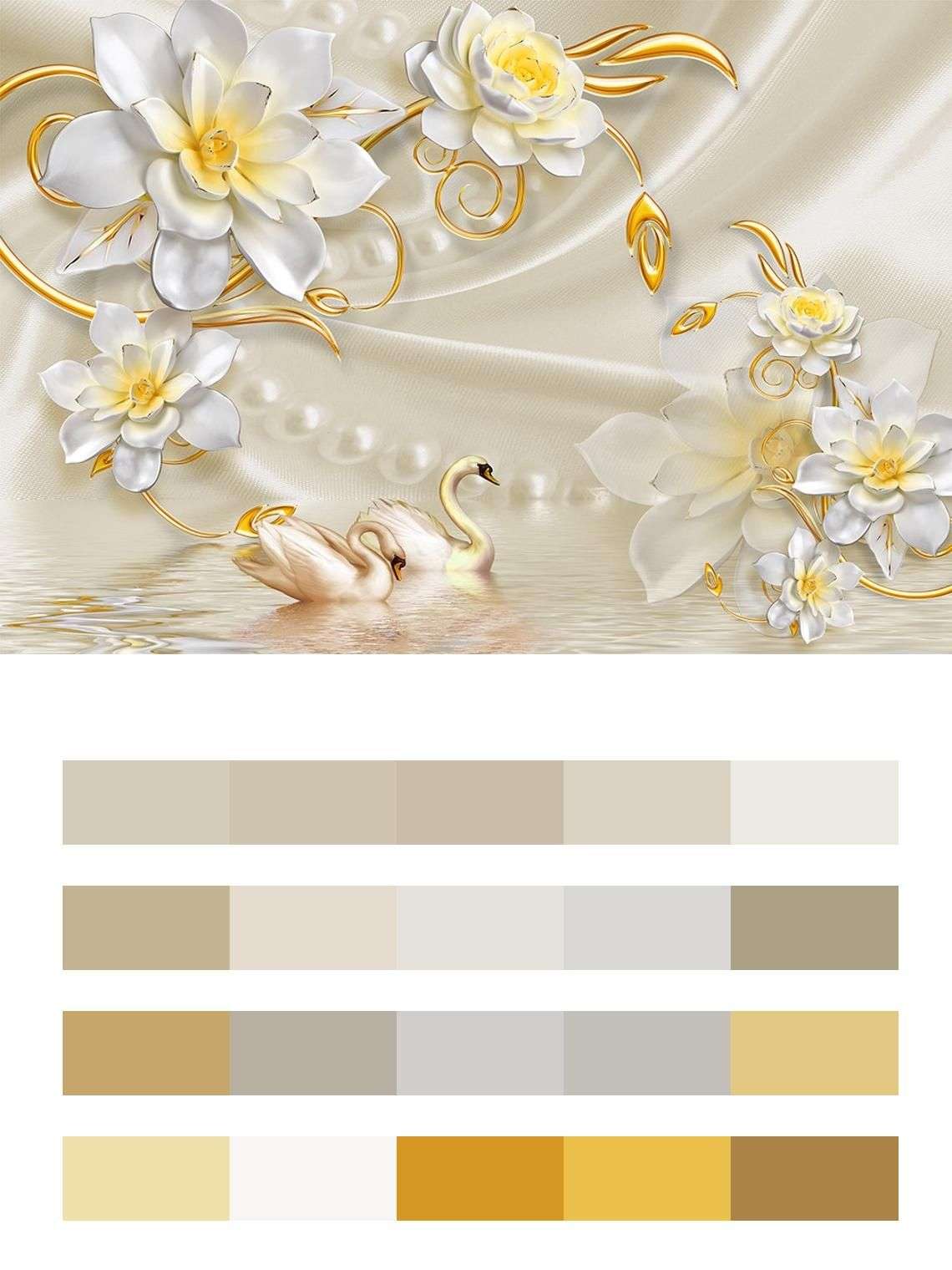 Бесшовные обои на стену: Жемчужные лебеди. Артикул: 9-1737