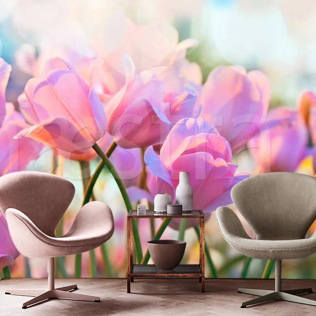 Бесшовные обои на стену: Тюльпаны под голубым небом. Артикул: 10-128