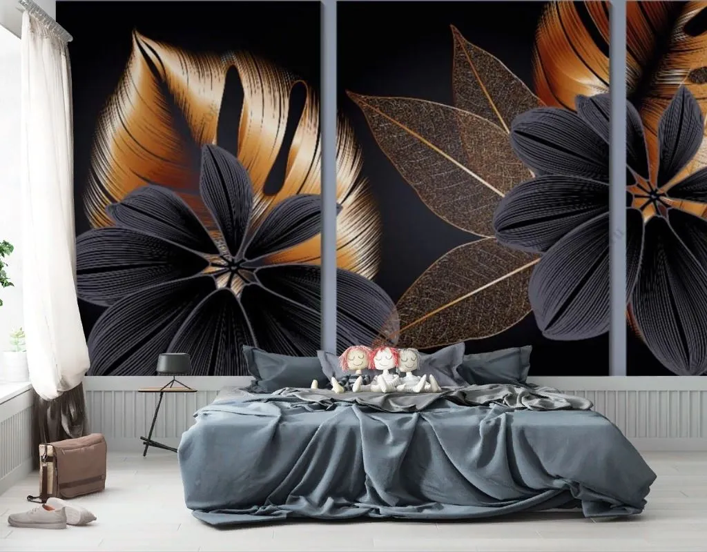 Бесшовные обои на стену: Коллаж черные цветы. Артикул: 9-1611