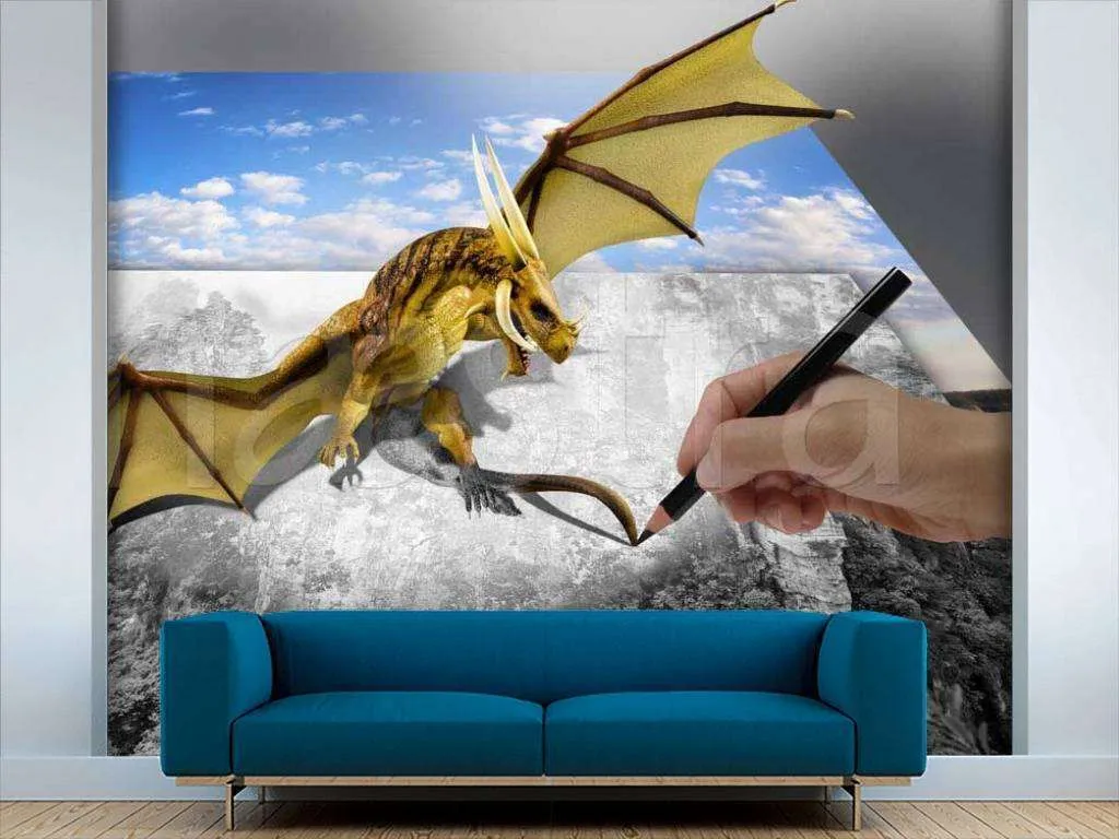 Бесшовные обои на стену: 3d дракон. Артикул: 7-307