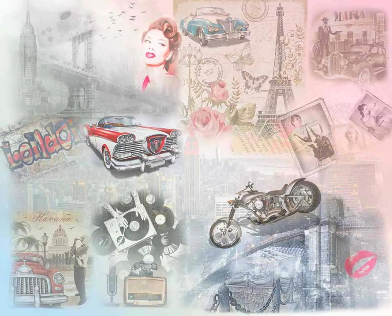Бесшовные обои на стену: Ретро постер. Артикул: 7-451