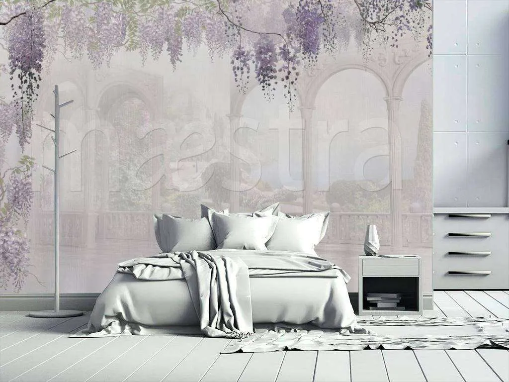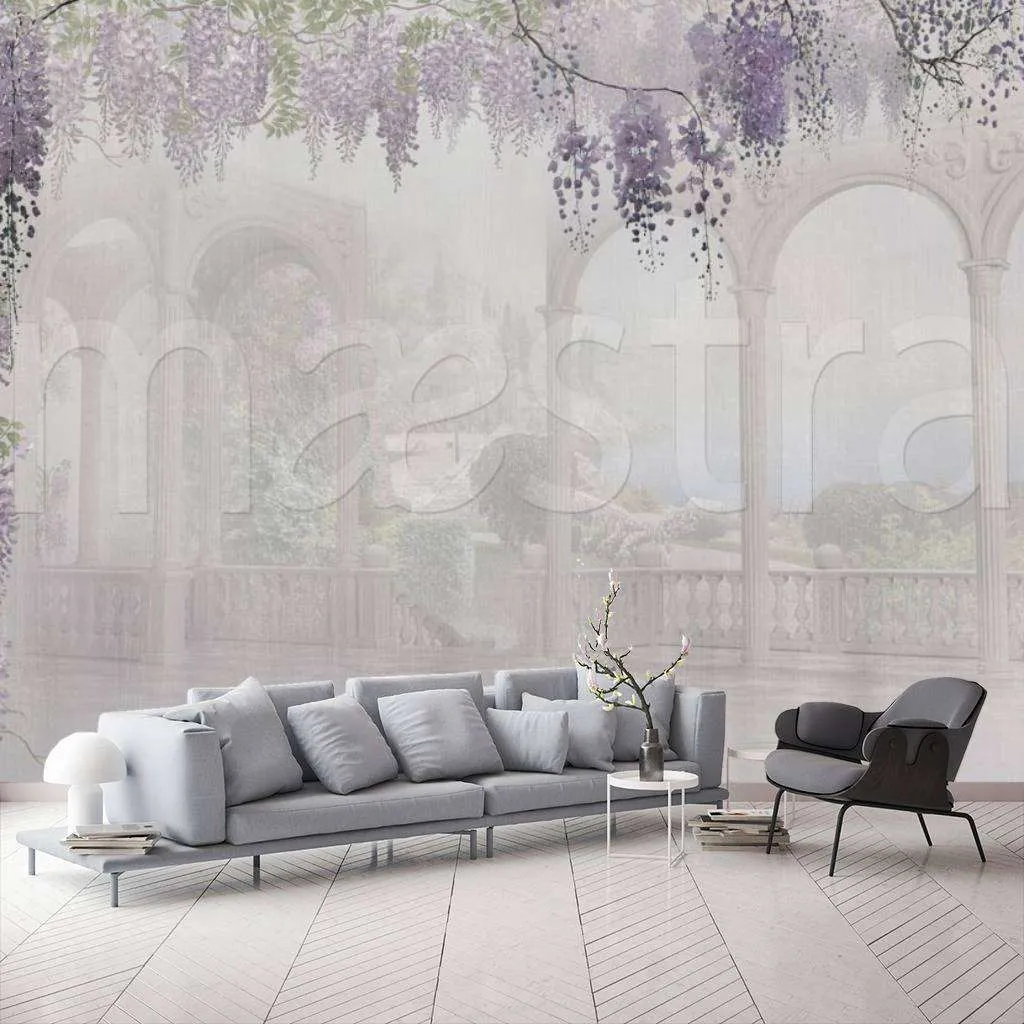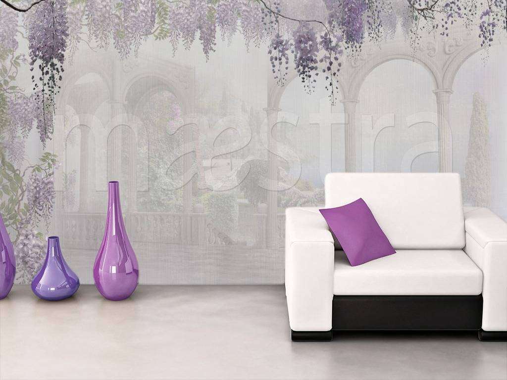 Бесшовные обои на стену: Сиреневые грозди над арками в дымке. Артикул: 7-601