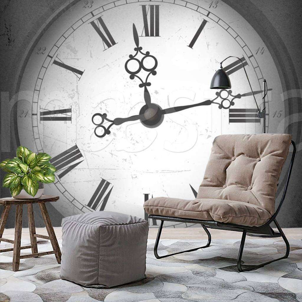 Бесшовные обои на стену: Черно белые часы. Артикул: 7-641