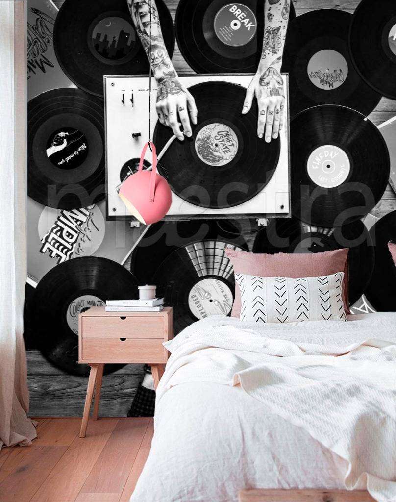 Бесшовные обои на стену: Виниловые пластинки и проигрыватель. Артикул: 9-286
