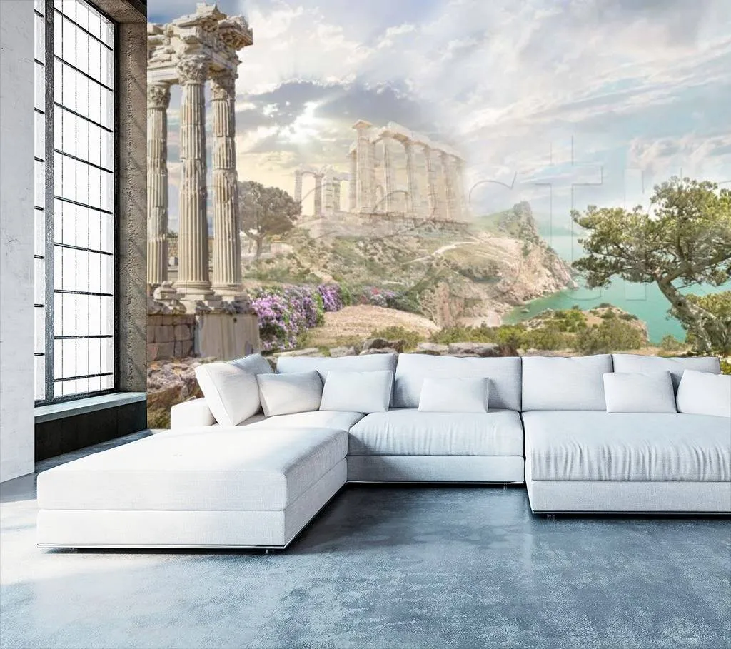 Бесшовные обои на стену: Развалины древнего города на берегу залива. Артикул: 5-013