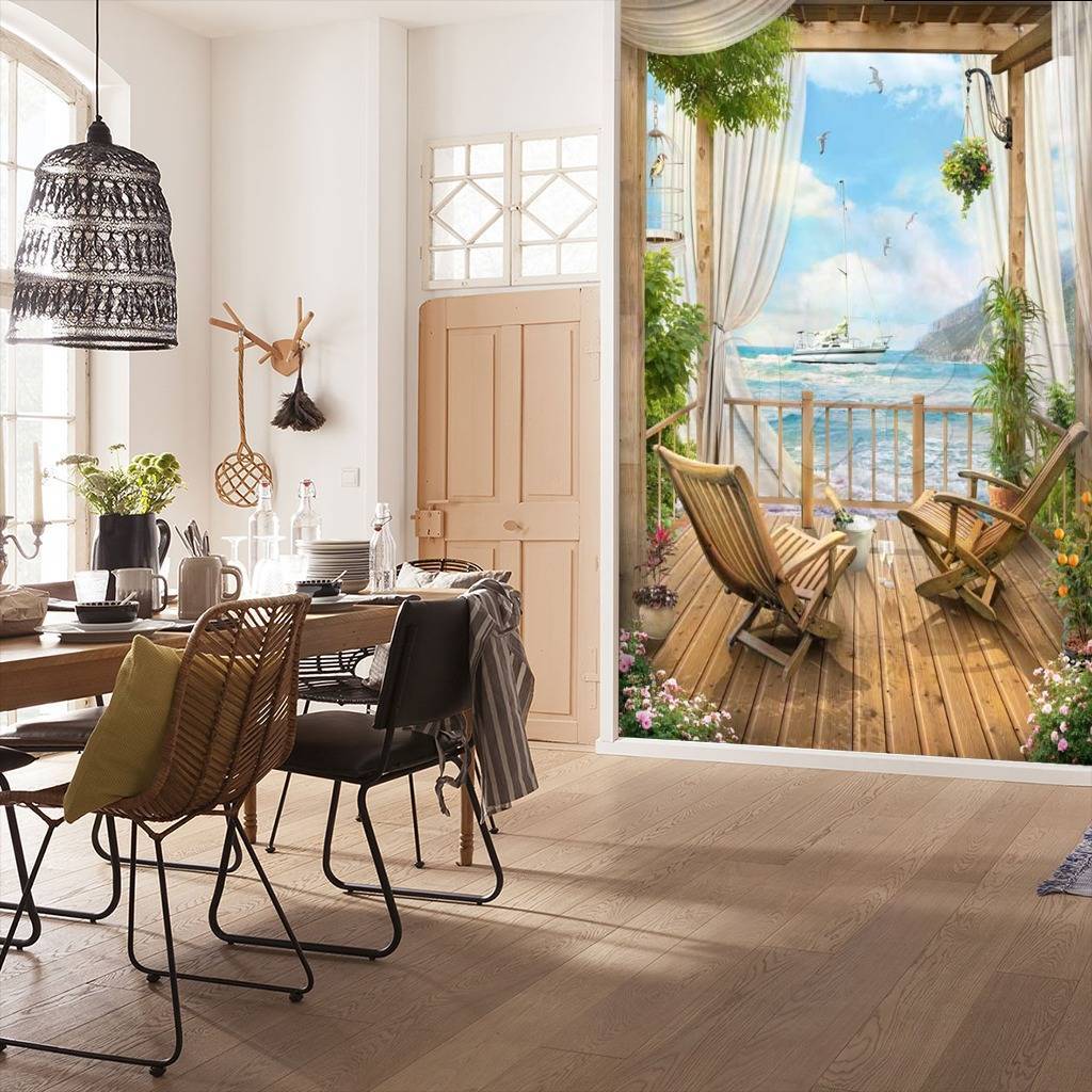 Бесшовные обои на стену: Вид на красивое море из беседки. Артикул: 11-108