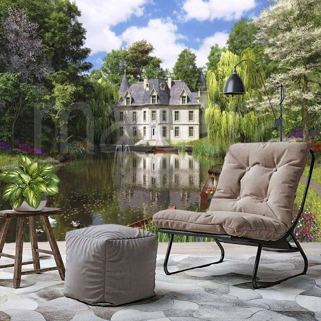 Бесшовные обои на стену: Дом в лесу с озером. Артикул: 8-136