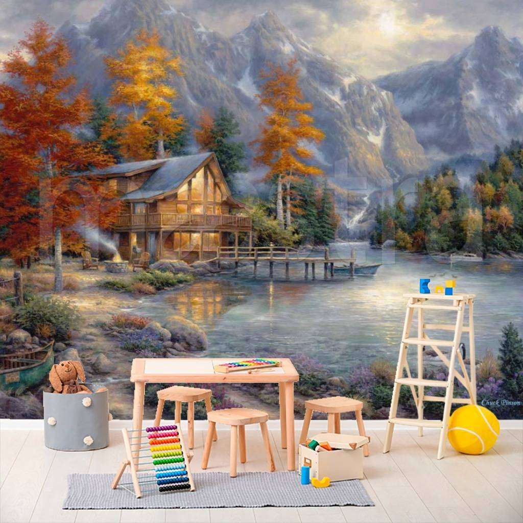 Бесшовные обои на стену: Озеро в осеннем лесу. Артикул: 8-141