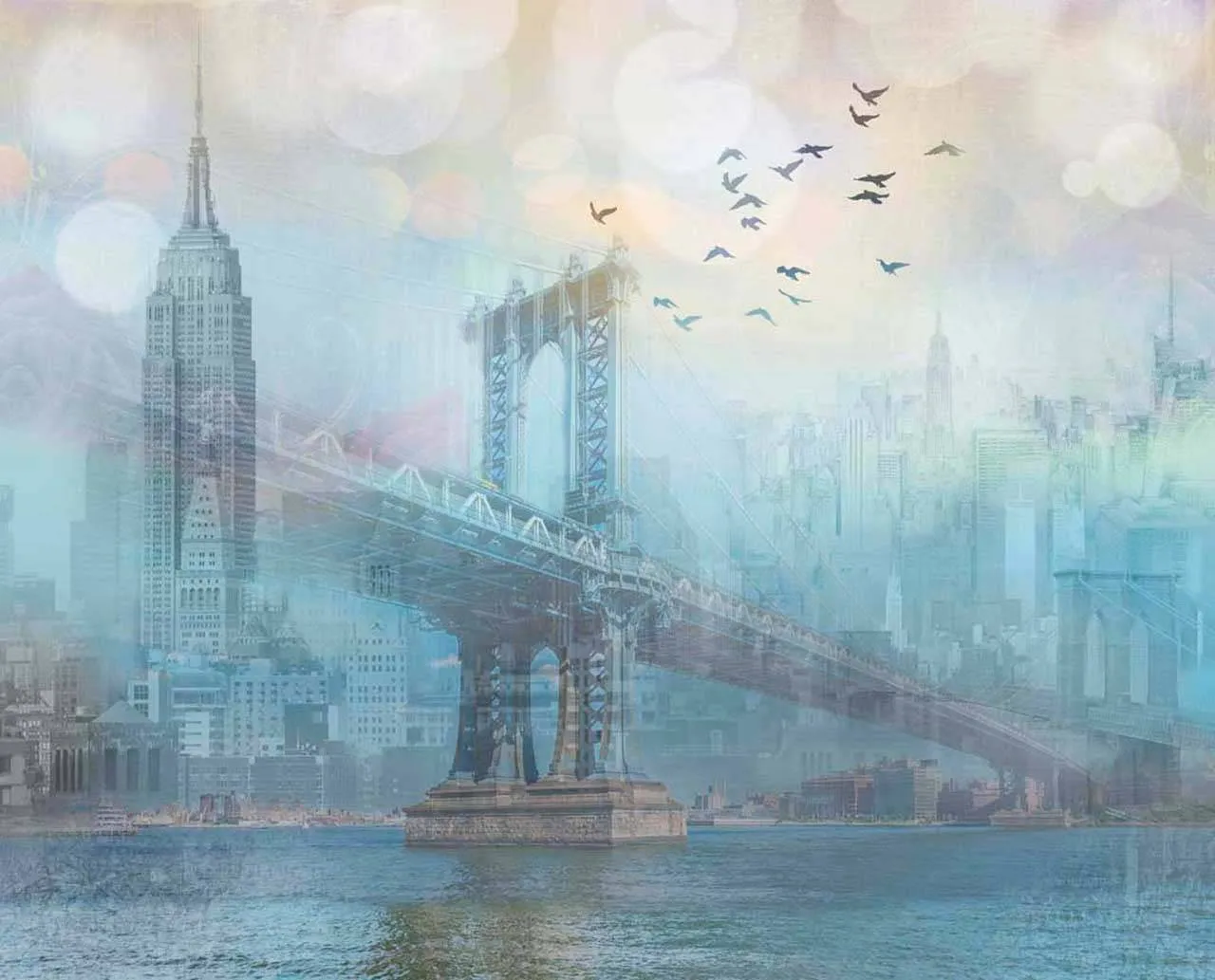 Бесшовные обои на стену: Город и мосты в тумане. Артикул: 7-401