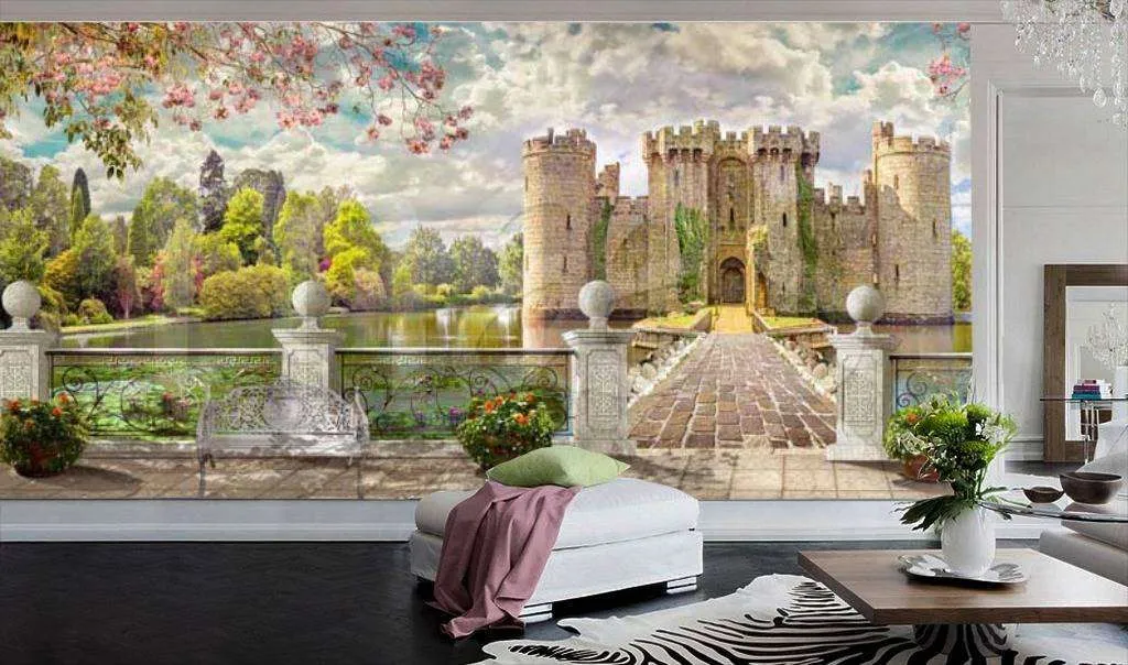 Бесшовные обои на стену: Вид на старый замок в парке. Артикул: 7-140