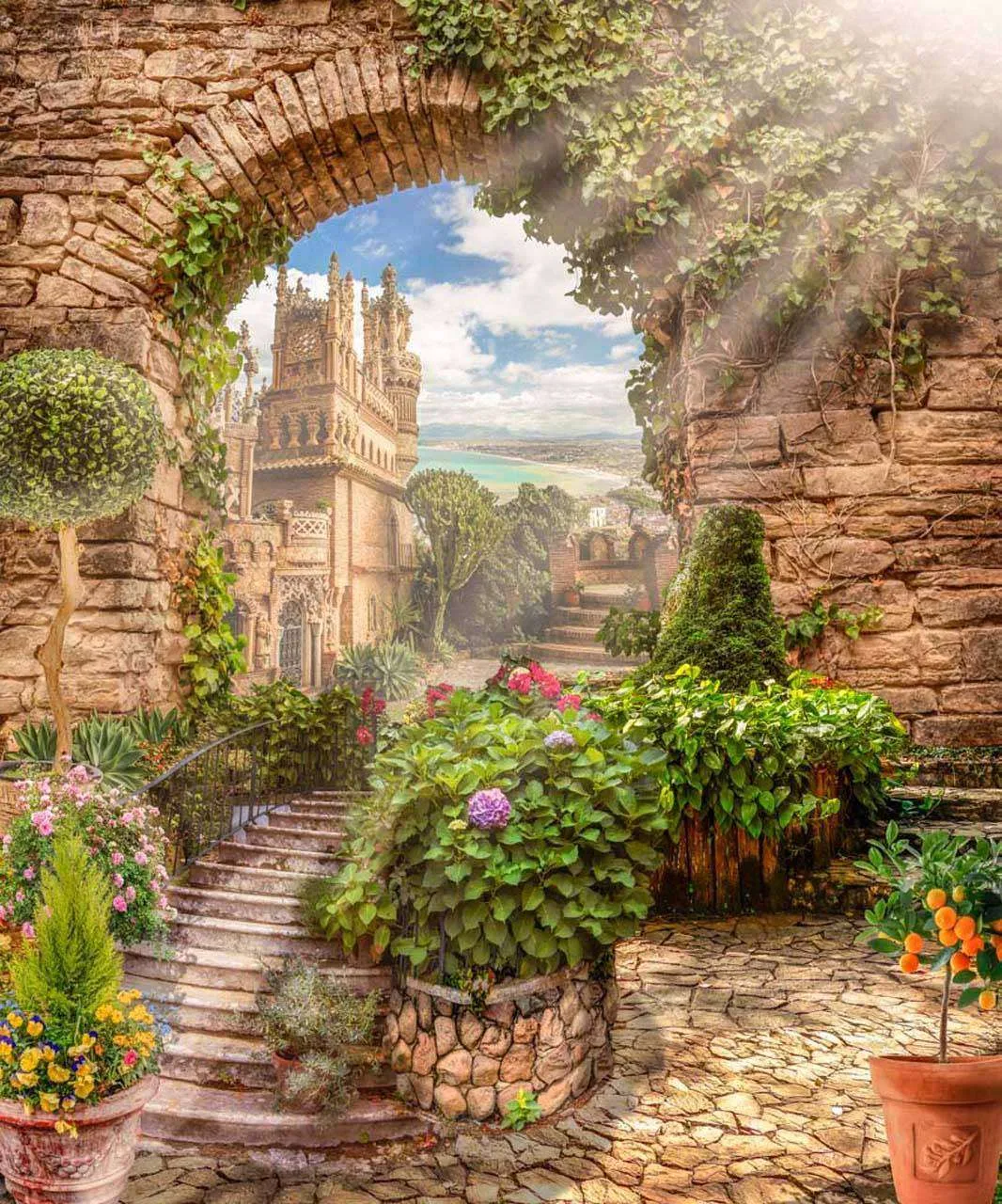 Бесшовные обои на стену: Зеленая арка под солнцем. Артикул: 7-247