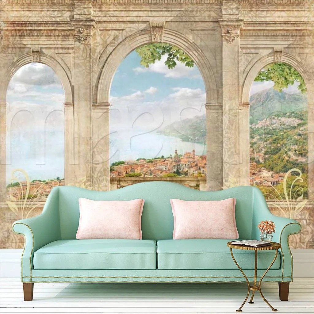 Бесшовные обои на стену: Вид на старый город через арки. Артикул: 11-191