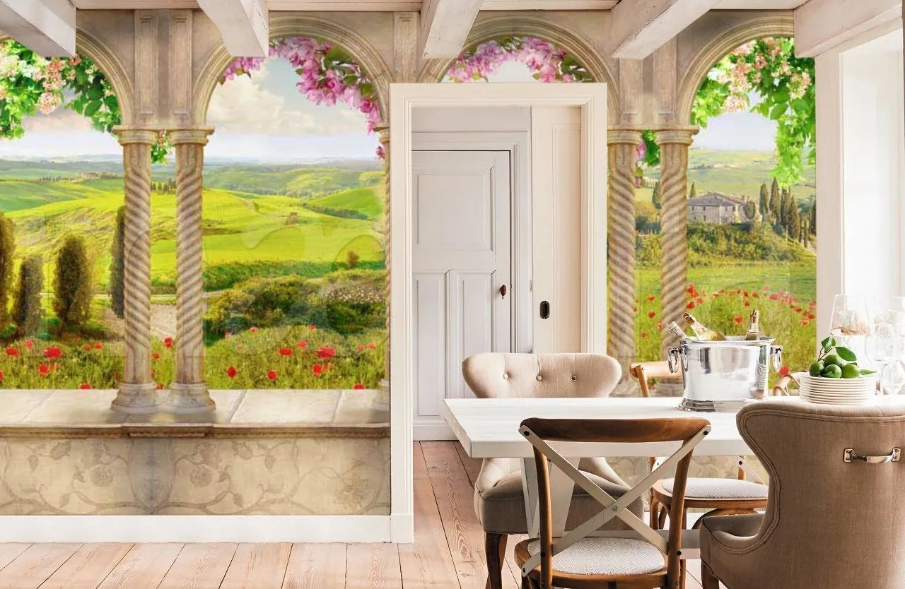Бесшовные обои на стену: Арка на террасе с видом на луг. Артикул: 7-157