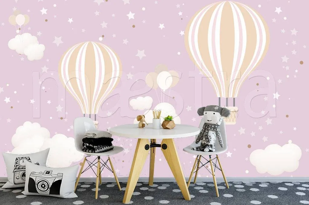 Бесшовные обои на стену: Воздушные шары на розовом. Артикул: 12-425