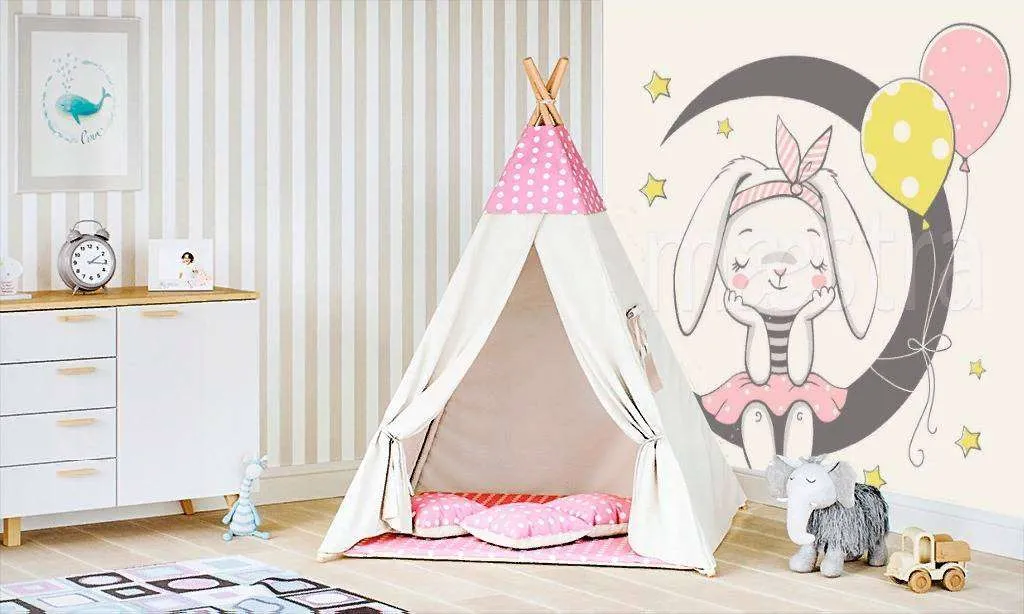 Бесшовные обои на стену: Милая зайка на качелях. Артикул: 12-480
