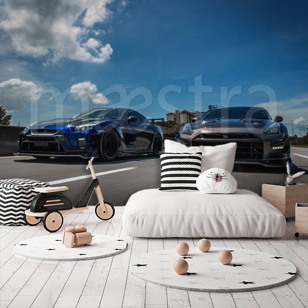 Бесшовные обои на стену: Машины на старте. Артикул: 12-587