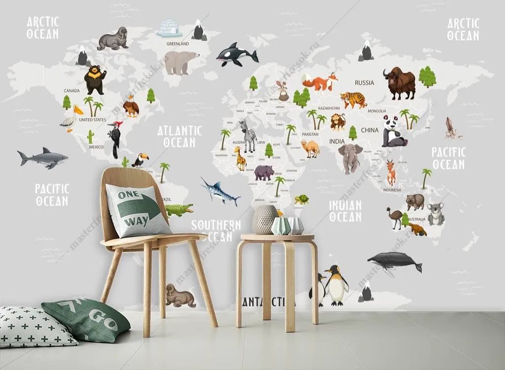 Бесшовные обои на стену: Карта мира на светлом фоне. Артикул: 12-766