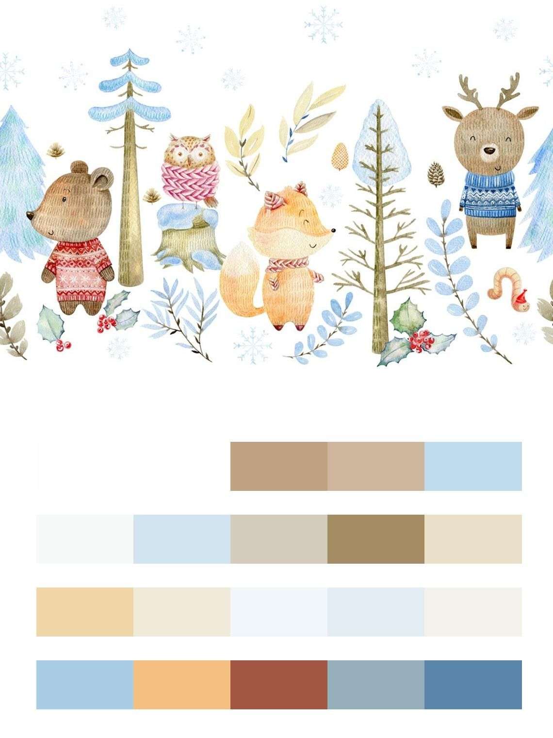 Бесшовные обои на стену: Лес и милые животные. Артикул: 12-798