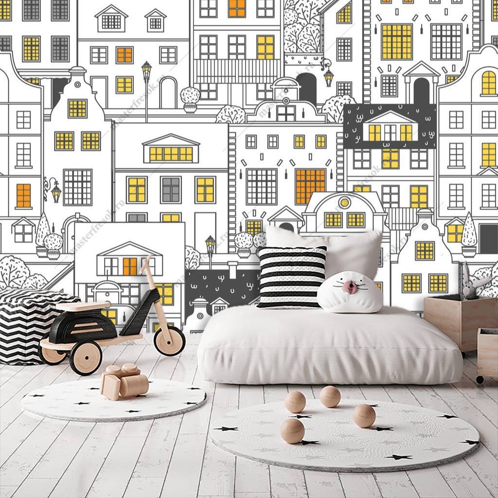 Бесшовные обои на стену: Домики фон. Артикул: 12-802