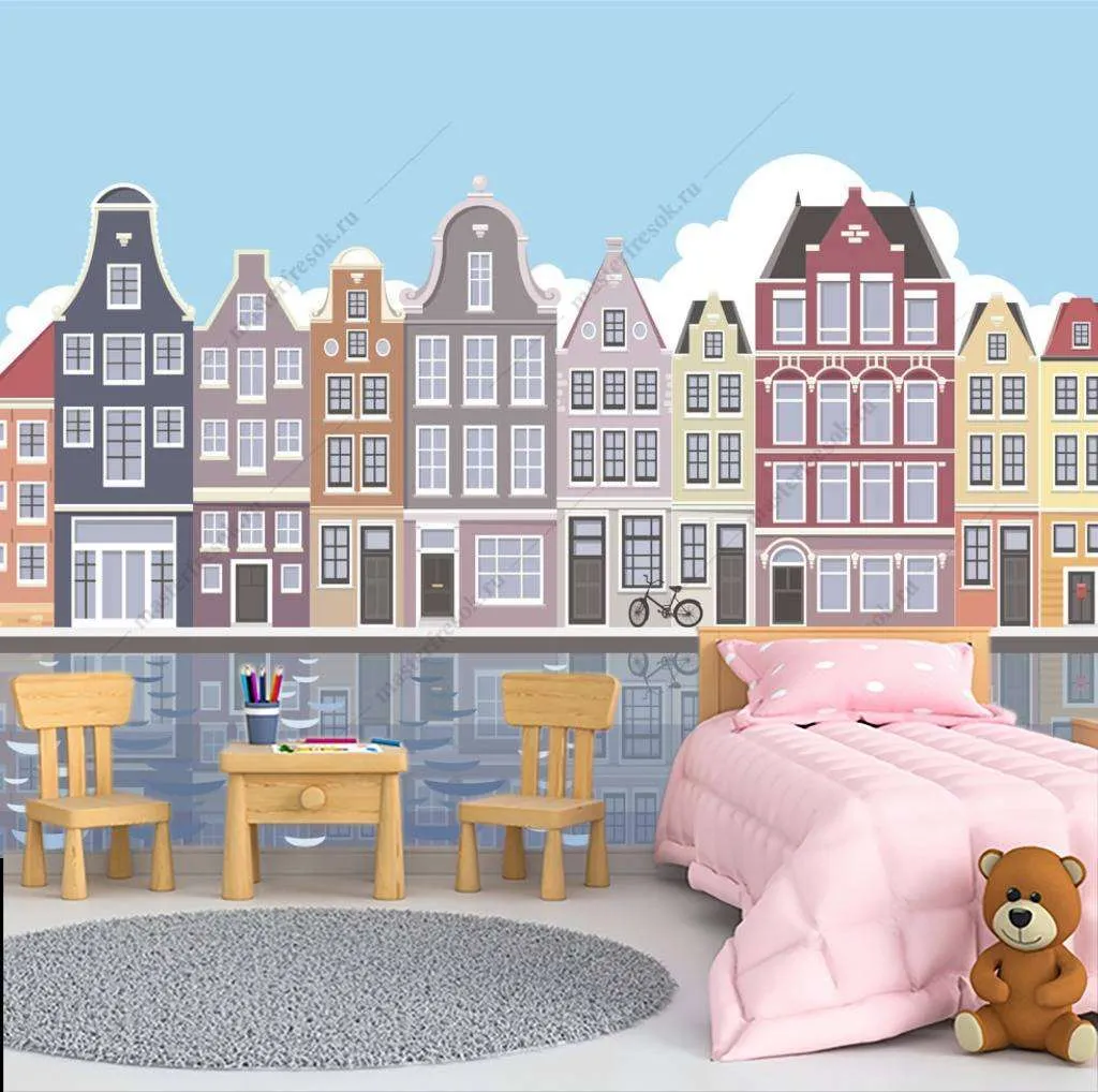 Бесшовные обои на стену: Домики Амстердама. Артикул: 12-804