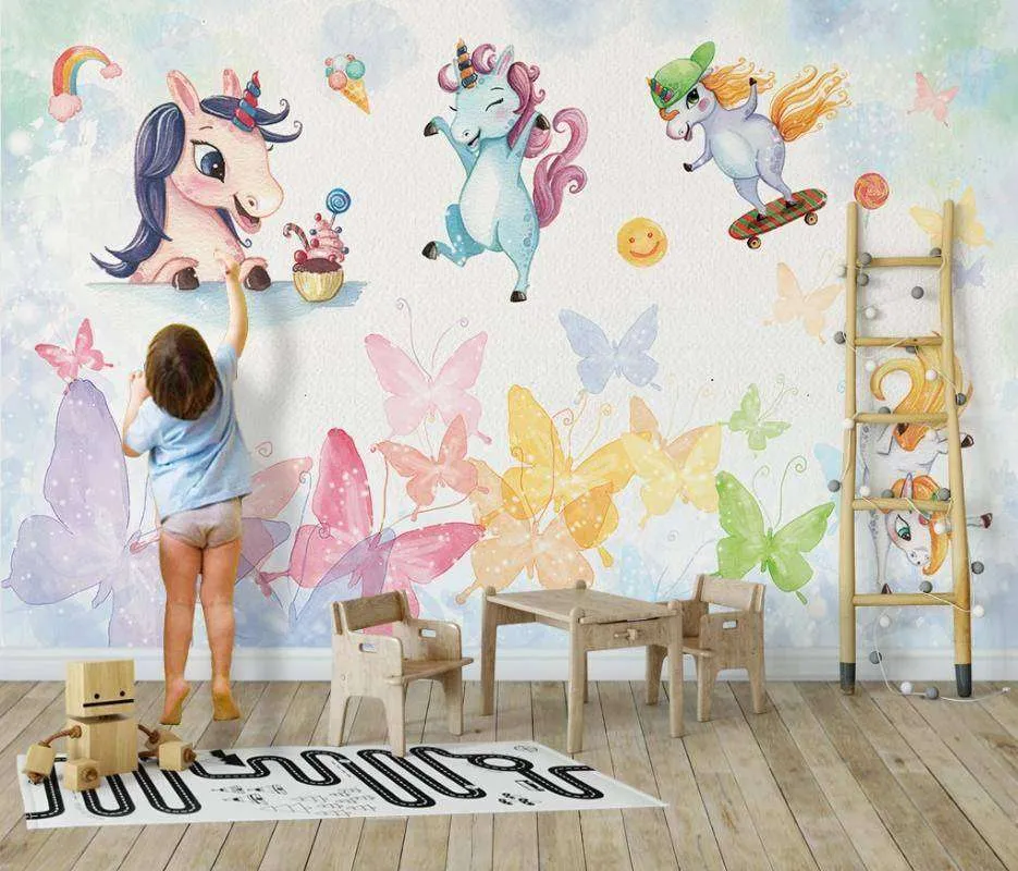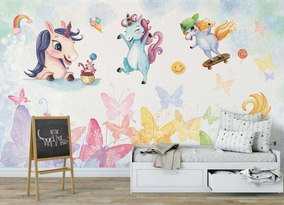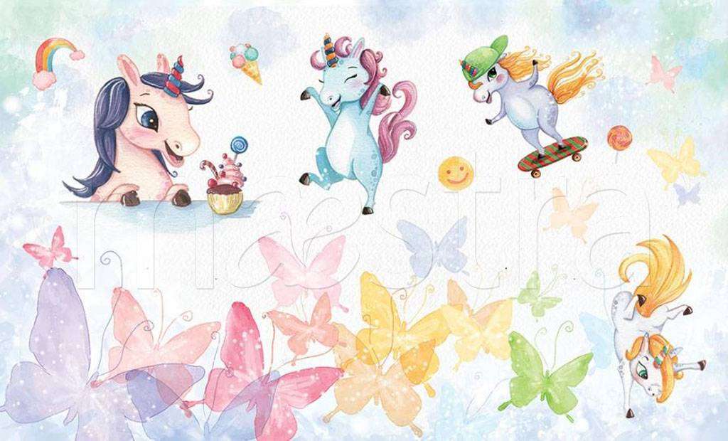 Бесшовные обои на стену: Единороги и бабочки. Артикул: 15-047