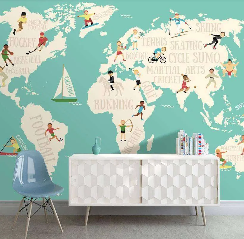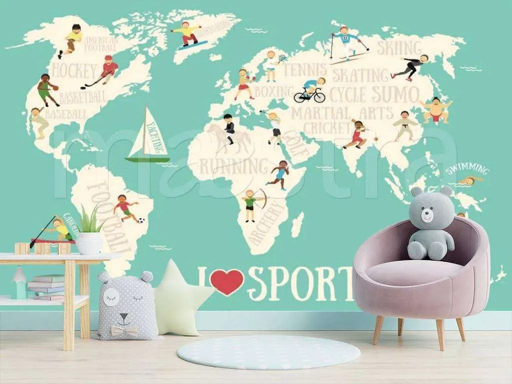 Бесшовные обои на стену: Карта на зеленом фоне. Артикул: 15-050