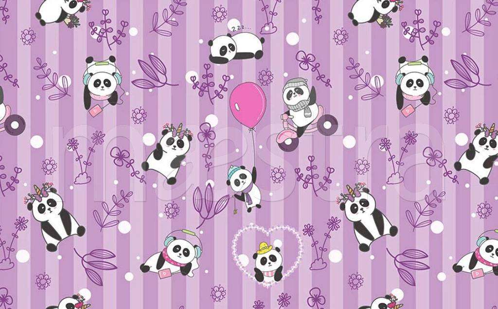 Бесшовные обои на стену: Панды на розовом фоне. Артикул: 15-065