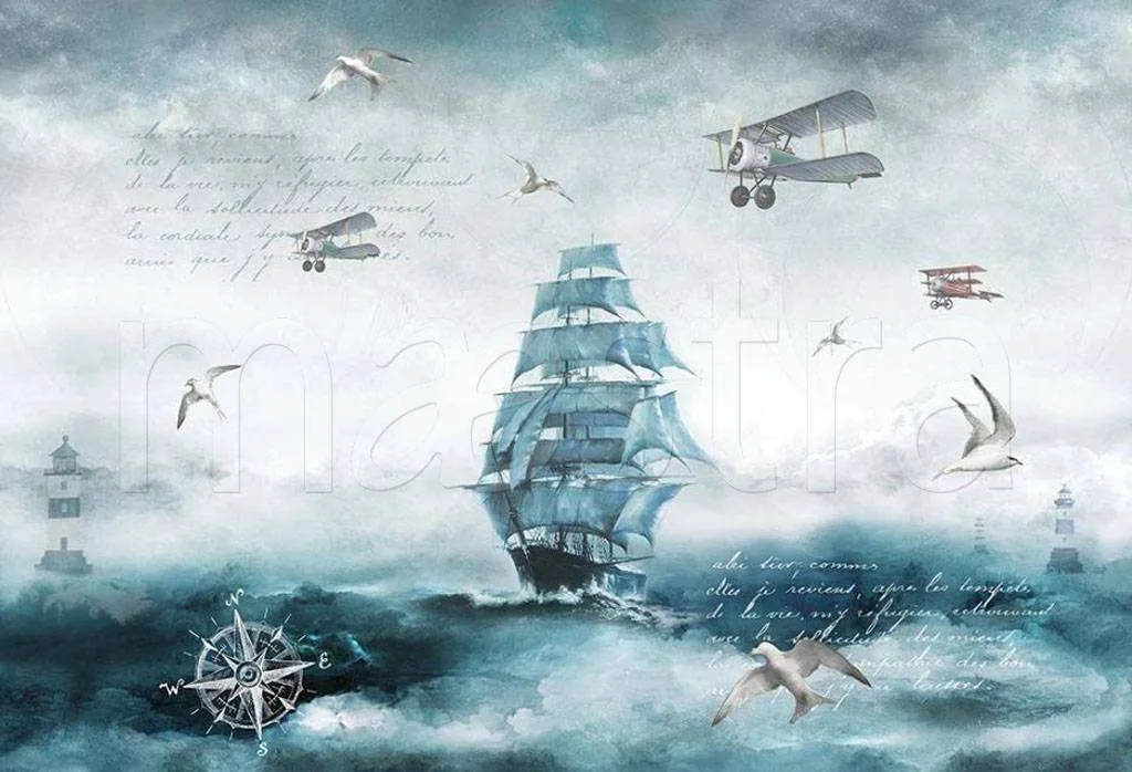 Бесшовные обои на стену: Корабль и самолеты. Артикул: 15-069