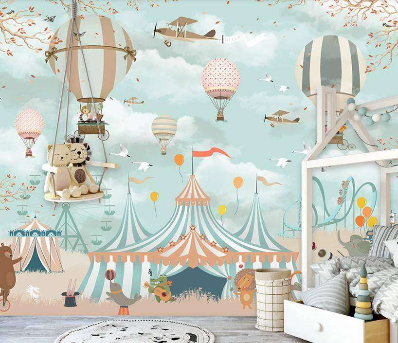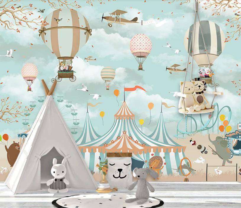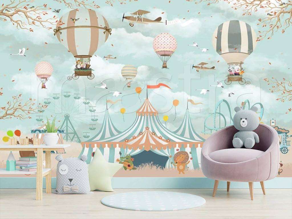 Бесшовные обои на стену: Воздушные шары и карусель. Артикул: 15-070
