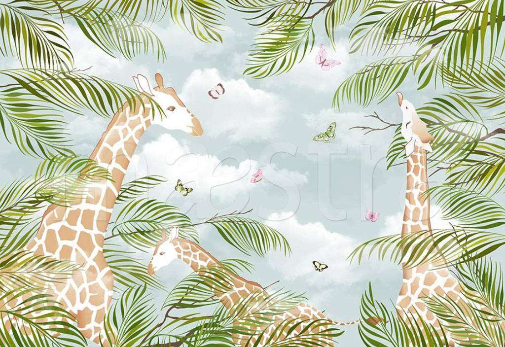 Бесшовные обои на стену: Жирафы в африке. Артикул: 15-080