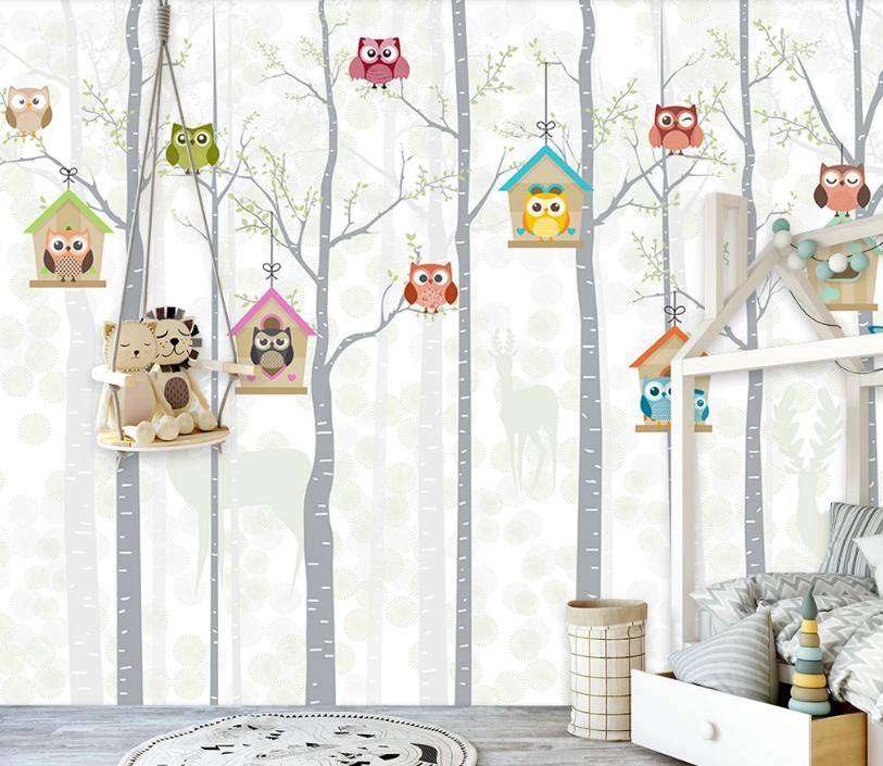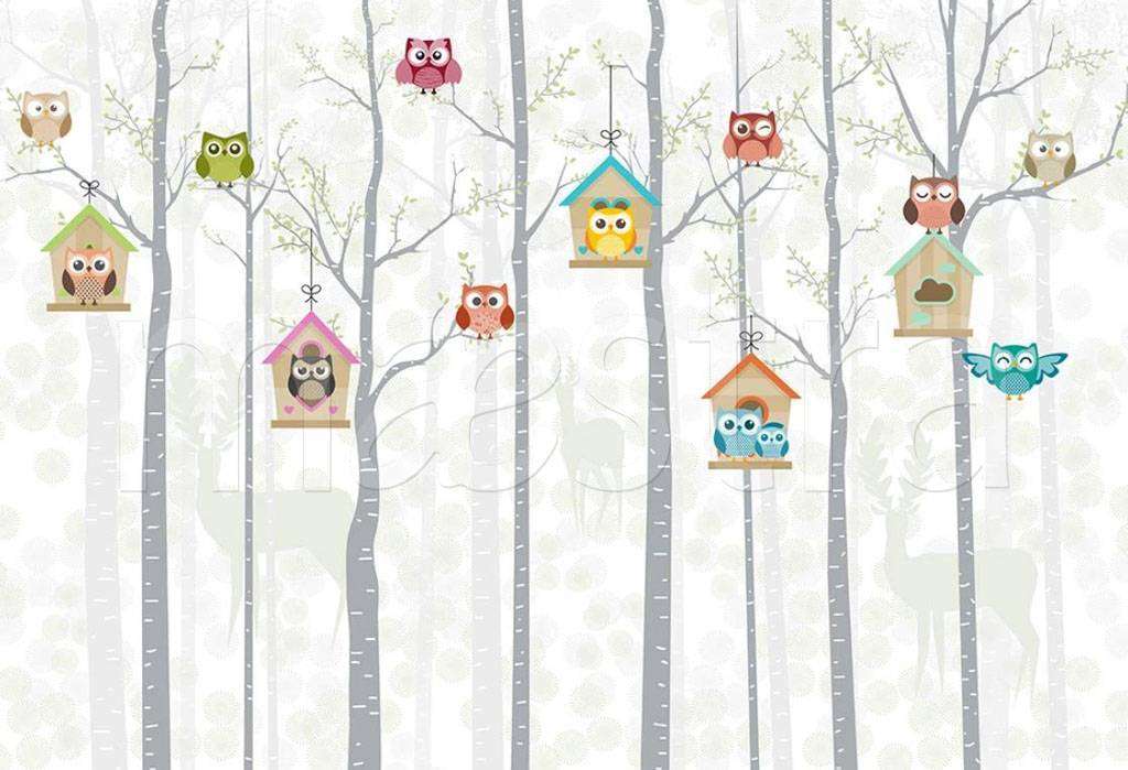 Бесшовные обои на стену: Совята в лесу. Артикул: 15-083